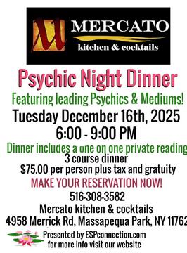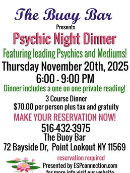 Join Us For Psychic Night Dinner or Brunch